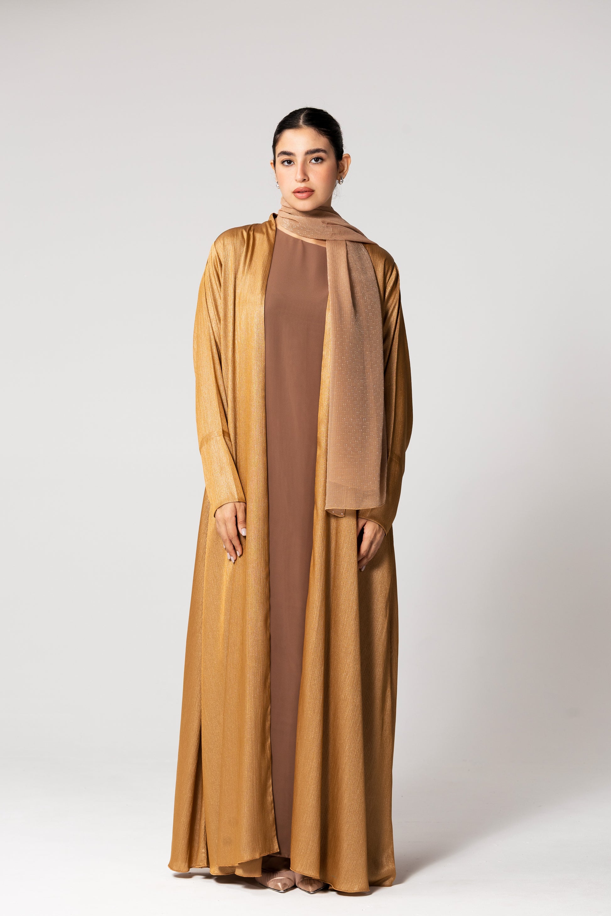 Serenité, crafted from shimmery satin and embellished with an abstract jacquard Shaila. Elevate your style with this elegant piece that effortlessly combines art and fashion. Channel.Exclusivity with every wear.